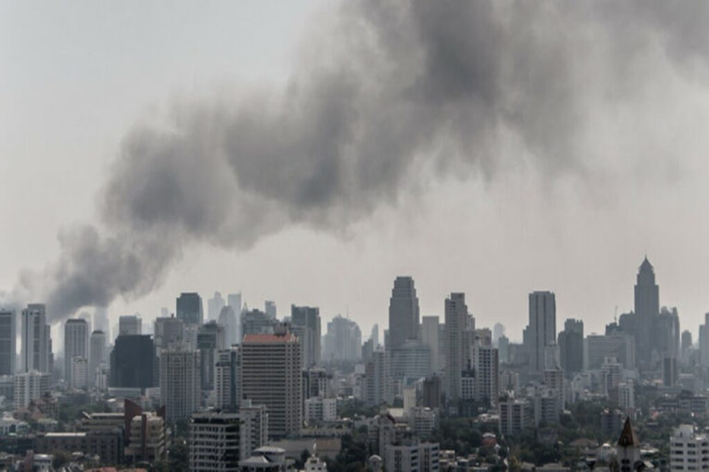 इससे पूरा शहर स्मॉग (Smog) की मोटी परत से ढक गया है।